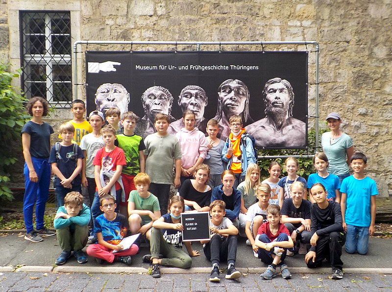 Die Klasse 5a war am 15. Juli mit Frau Jacobsen und Frau Steiner im Museum für Ur- und Frühgeschichte. Dort machte Frau Tiersch mit der gesamten Klasse eine Rundtour durchs Museum. Auf der Rundtour lernten wir viel über die Altsteinzeit, die Jungsteinzeit und die Metallzeit, beispielsweise über den damaligen Hausbau. Außerdem gab es alte Menschenskelette, die unter Grabhügeln gefunden wurden, oder schöne Prunkbeile. Viele interessante Sachen konnten wir bestaunen, die uns Frau Tiersch gut erklärte. Nach der Rundtour durften wir selbst in Teams als Archäologen aktiv werden und so den normalen Ausgrabungsablauf selbst erleben. Wir haben u.a. alte Urnen, Tonscheiben und Schlacke gefunden. Dabei haben wir sehr viel Spaß gehabt.
