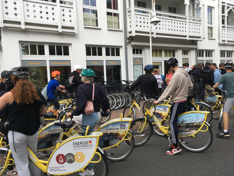 Am 07.09. stand eine gemeinsame Radtour nach Prora auf dem Plan. Unser Ausflug begann um 8:00 Uhr an der Fahrradausleihe Sellin. Nachdem sich alle ein Fahrrad ausgesucht hatten und mit mehr oder weniger Kopfschutz bestückt waren, ging es los.