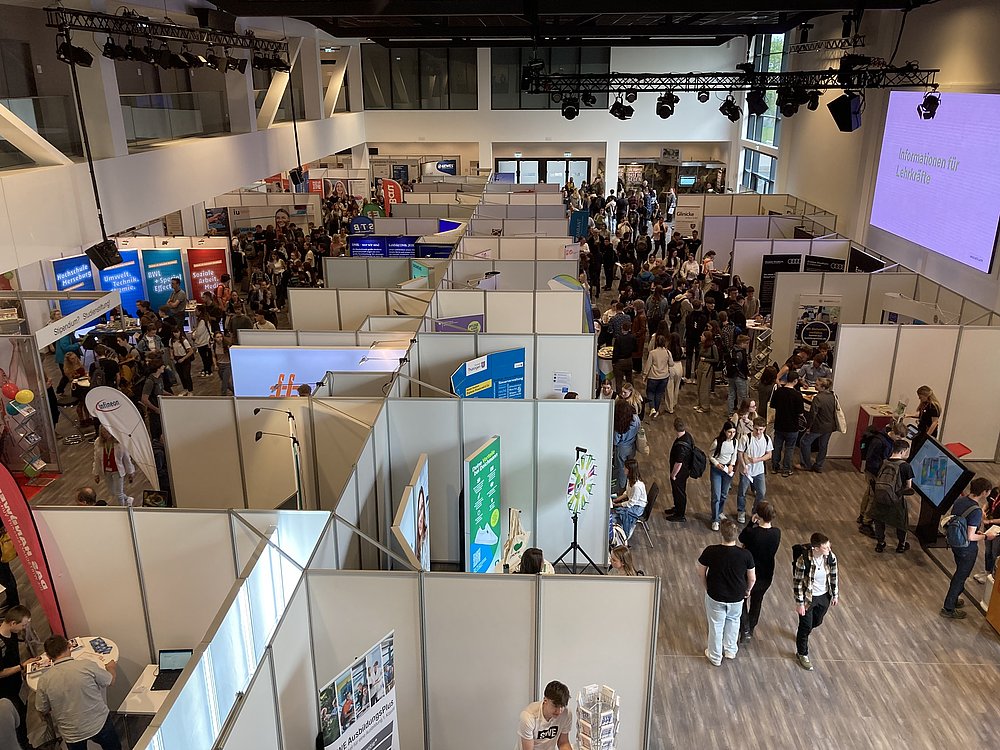 Aber wie verlief er? Zweieinhalb Stunden lang erkundeten 14 Schülerinnen und Schüler der 11. Jahrgangsstufe die zahlreichen Stände im Steigerwaldstadion. Dort präsentierten über 70 Aussteller ihre Ausbildungsplätze, Studiengänge und vieles mehr. Durch zuvor angemeldete oder spontane Gespräche kamen wir in den Austausch mit den Institutionen und konnten so einen guten Eindruck von den verschiedenen Bereichen bekommen. Am Ende des Tages war für jeden etwas dabei und wir alle verließen die Messe mit Erkenntnissen, seien es neue, bekräftigte oder nun ausgeschlossene Zukunftsvorstellungen, und einem Haufen Werbegeschenke. Alles in allem war es ein erfolgreicher Tag.