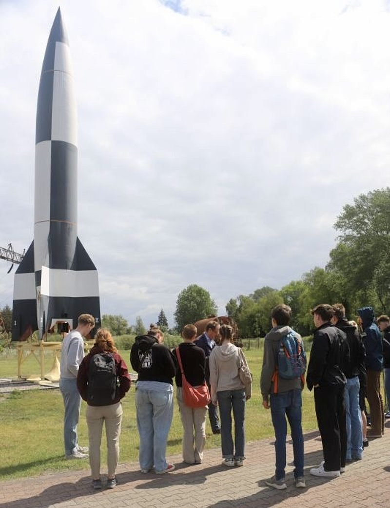 Am Dienstag besuchten wir das Historisch-Technische Museum in Peenemünde, in dem wir in einer Führung mehr über die „Vergeltungswaffen“ der Nazis, ihre Entwicklung und die mit Bau und Anwendung der V1 und V2 zusammenhängenden Verbrechen wie Zwangsarbeit und Kriegsterror erfuhren.