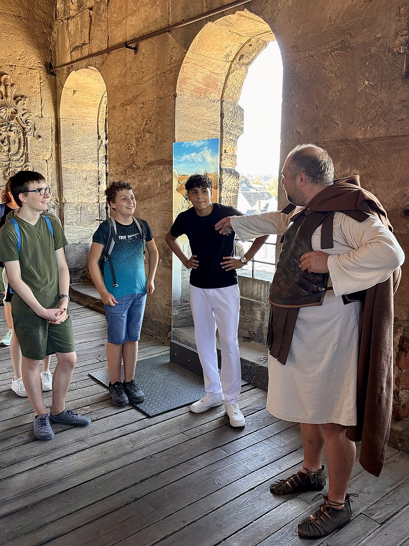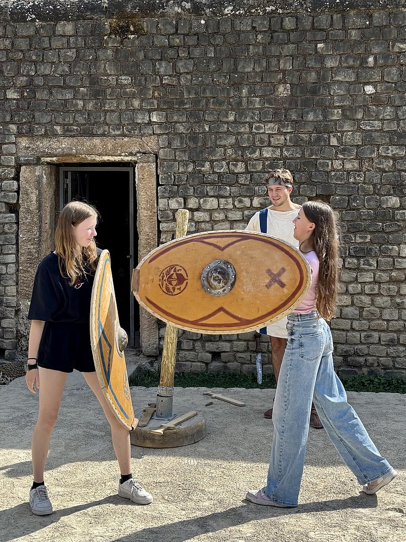 "Mein Highlight war die Führung im Amphitheater. Unser Führer Robin hat uns alles sehr gut vermittelt, indem er uns alles mit einem Mix aus Infos, Spaß und eigenem Ausprobieren veranschaulicht hat. Dabei lernten wir viel über die einzelnen Gladiatorentypen und deren Waffen und Kampftechniken. Am Ende durften wir auch noch live ausprobieren, wie die Gladiatoren früher gekämpft haben." (Carlo)