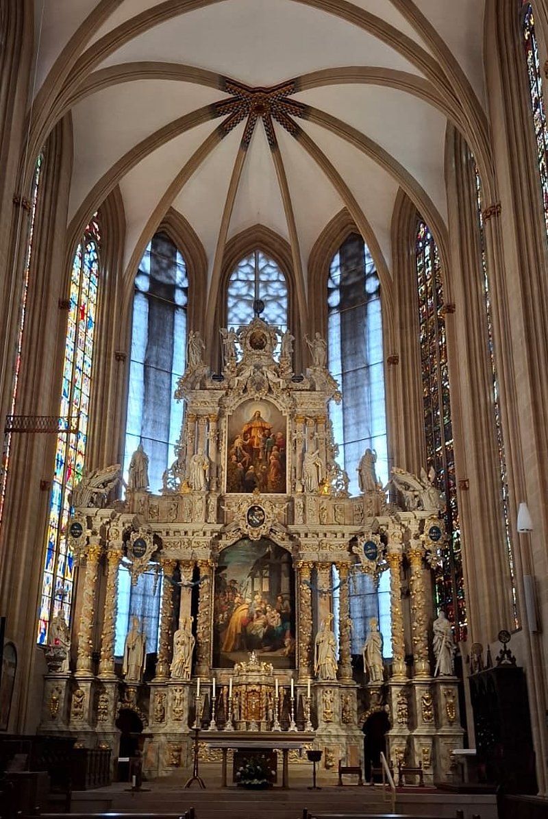 Nach einer kleine Mittagspause sind wir zum Dom gelaufen. Wir waren von der Architektur, den Säulen und den bunten Fenstern im Dom begeistert. Der Chorraum und die hohen Decken mit dem einfallenden Licht haben für eine ganz besondere Stimmung gesorgt. Die Fenster waren riesig und die Farben haben durch das Sonnenlicht richtig geleuchtet!