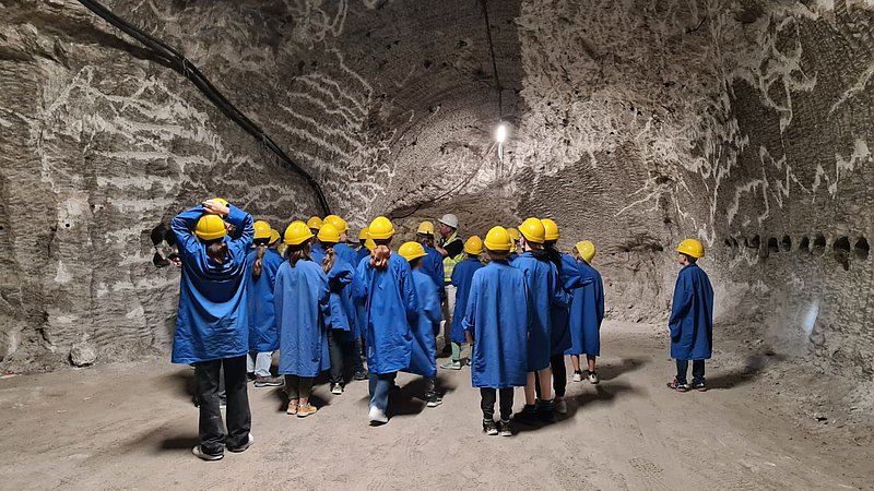 Am Mittwoch reisten wir (erneut mit dem Bus) zum Erlebnisbergwerk in Sondershausen. Dort unternahmen wir eine Tour – 700 Meter unter der Erde – durch Teile des Bergwerkes (größtenteils per LKW). Unter anderem waren wir im tiefsten Konzertsaal der Welt, rutschten eine sehr steile Rutsche unter der Erde hinunter und fuhren mit einem Boot über einen unterirdischen Salzsee. Wir erfuhren viel über die Geschichte des Bergwerkes. Die Fahrer der LKWS waren außerdem sehr waghalsig und sehr schnell (bis zu 45 km/h, was uns jedoch durch den Tunneleffekt sehr viel schneller vorkam.). Die Gänge waren sehr eng und verzweigt, und erstreckten sich über mehr als 500 km.