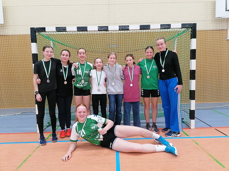 Eine Woche nach dem Gewinn der Bronzemedaille der Jungen wollten die Mädchen der Altersklasse U16 es mindestens genauso gut machen. Mit einem Sieg im Stadtfinale, Ende des vergangenen Jahres, qualifizierten sich die Mädchen der U16 ebenso für das Schulamtsfinale Handball. Austragungsort war „unsere“ Asbachhalle in Weimar am 16.01.25. Unsere Mannschaft spielte im Modus Jeder-gegen-Jeden über 2x8 Minuten. Im Auftaktspiel gegen die Schule aus Kölleda gab es leider eine knappe 5:7 Niederlage. Beide Teams begegneten sich auf Augenhöhe, doch die Treffsicherheit der Gäste gab am Ende den Ausschlag. Trotz der Niederlage war unser Team weiterhin hochmotiviert und wollte das zweite Spiel unbedingt für sich entscheiden – gesagt, getan. Durch einige taktische Umstellungen, Treffsicherheit vorm Tor und einer guten Abwehrleistung gelang ein 6:4 Erfolg gegen die Schule aus Erfurt. Somit durfte unser Team den zweiten Platz bejubeln. Der Tagessieg ging an die Schule aus Kölleda, deren Team wir für das Landesfinale ebenfalls viel Erfolg wünschen.