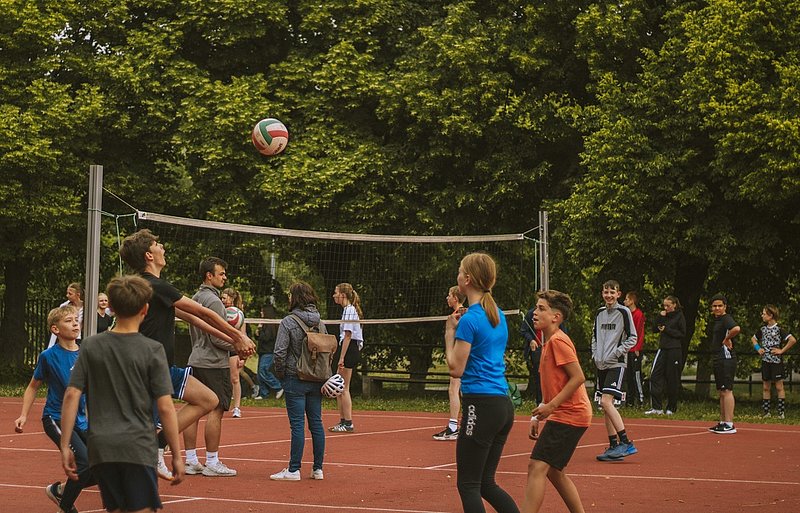 Auch an den Ballspielstationen wurde mit Begeisterung gespielt – etwa beim Zweifelderball, Volleyball oder Basketball in der nahegelegenen Asbachhalle.