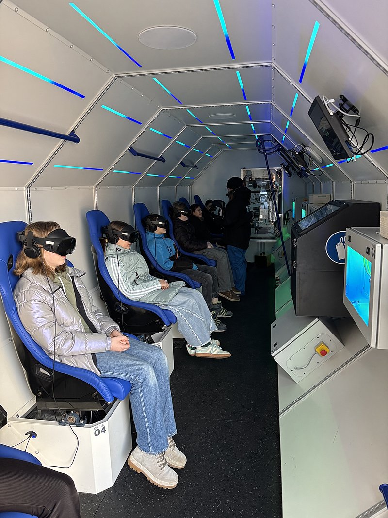 Besonders beeindruckend war die VR-Erfahrung, bei der die Schülerinnen und Schüler in die Rolle von Astronauten schlüpfen konnten. Mit VR-Brillen ausgestattet, fühlten sie sich ein wenig so, als würden sie tatsächlich im Weltraum schweben.