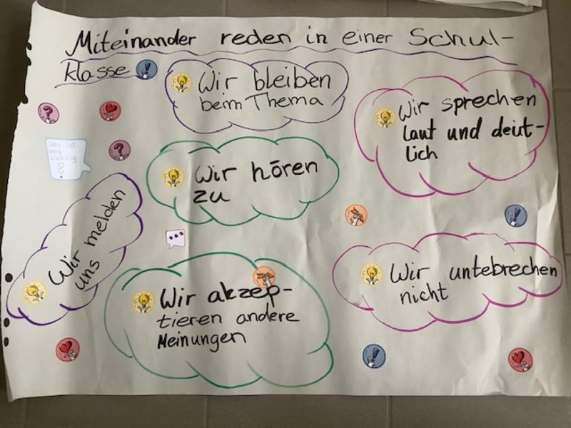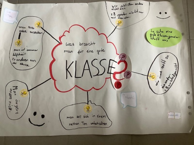 Am 5.10.2020 hat die Klasse 5a zum Thema „Teambildung“ einen Projekttag gemacht. Zusammen mit den Experten Veit und Hans vom SOS Kinderdorf, Frau Goretzki und unserer Klassenlehrerin Frau Keller haben wir 5 Unterrichtsstunden lang über das Thema gesprochen. Dazu spielten wir auch viele Spiele: z.B. musste die halbe Klasse eine Plane umdrehen, ohne auf den Boden zu treten und wir ha-ben ein Plakat zum Thema „Miteinander“gestaltet. Das hat der ganzen Klasse sehr viel Spaß gemacht. Wir freuen uns jetzt schon sehr auf den nächsten Projekttag.