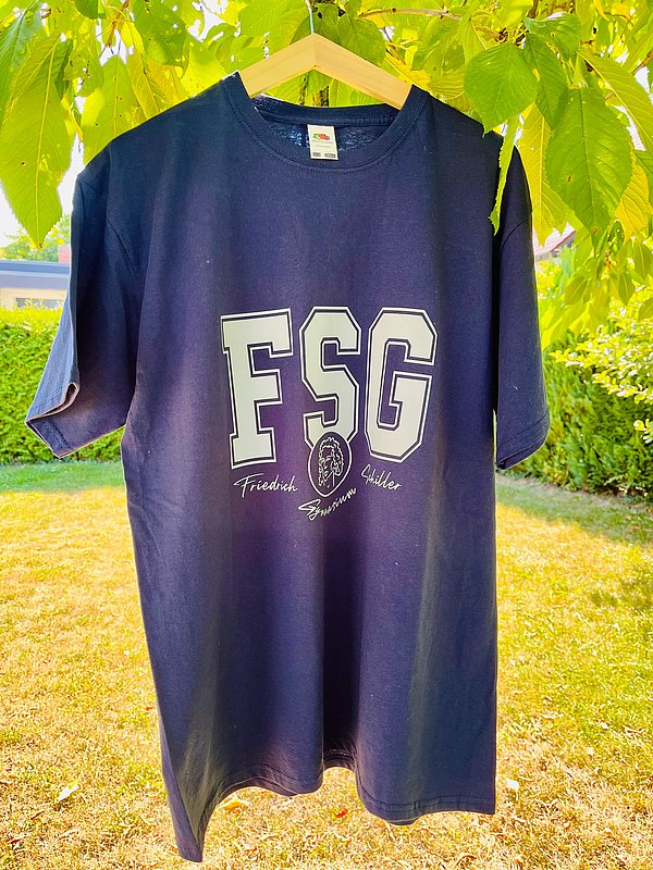 Seit dem Schuljahr 2021/22 gibt es die neue Schiller-Kollektion: neue Motive, neue Farben und sogar einen FSG-Hoodie! Das Design stammt von Julius Wiegand und Tom Hoffmann.